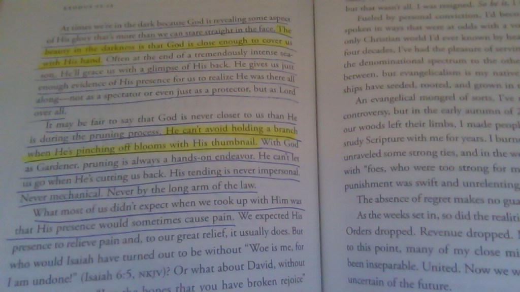 In the same way, Beth Moore talks about our pruning. She talks about our callings from God. There are many different phases in our calling and I remember this one vividly “Don’t’ be surprised if you experience an ironic sense of lostness just when you thought you’d found what you were looking for. This can be its own form of pruning. It reminds us that what we really want is God. Neither the arrival nor achievement can keep us satisfied. Only abiding can.” (154). She goes on to say, “With God as Gardener, pruning is always a hands-on endeavor. He can’t let us go when He’s cutting us back. His tending is never impersonal.” (156).