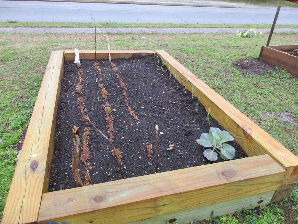 It is a good thing that we expanded it because we needed extra space for all of the potatoes that we put in this year. We also planted two and a half, 40ft rows of onions. Once the frost danger is past, we will have room to put in 40 tomato plants, 20 pepper plants, and then green beans. We have more room in the garden to put in another large in-ground bed if we can get the compost delivered (we have volunteer who brings it to the site). If we get that soil, we will add in more green beans, squash, and maybe even some corn.