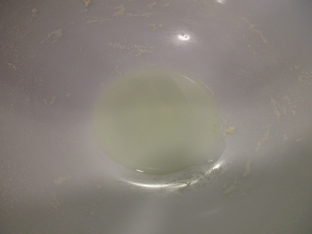 Once the dough is smooth, put the dough seam side down on the counter and go wash your hands. Now return to your mixing bowl. You will need to put in about 2 Tablespoons of oil into the bottom of the bowl. Use your hands to rub oil all over the sides of the bowl.