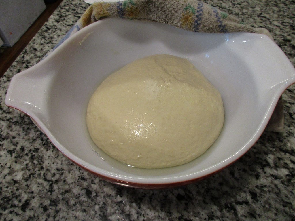 Today’s warm place in the kitchen was the top of the refrigerator. If you notice, I do have another bowl on top of the fridge. That is my sourdough dough doing a slow rise. It will become pizza dough for tomorrow night’s dinner.