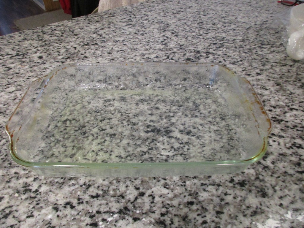 At this time, you need to get your bread pan greased well. Here is not the point where you skimp on your oiling. Don’t have big puddles of oil, but make sure that all surfaces are oiled well. You don’t want the bread to stick. What if you don’t have a bread pan? This recipe I will be making bread in my 9×13 glass casserole dish. There is nothing extra that you need to think about purchasing to make this recipe.